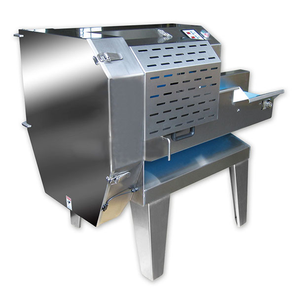 Main products切菜機(jī)的切片功能對于帶旋轉(zhuǎn)刀具的刀片,刀具不僅對物料有切割功能,而且通過設(shè)計一定的刀片曲線,切菜機(jī)在物料直線進(jìn)給的情況下也有切割功能,因此具有模擬人的手動切片的作用。